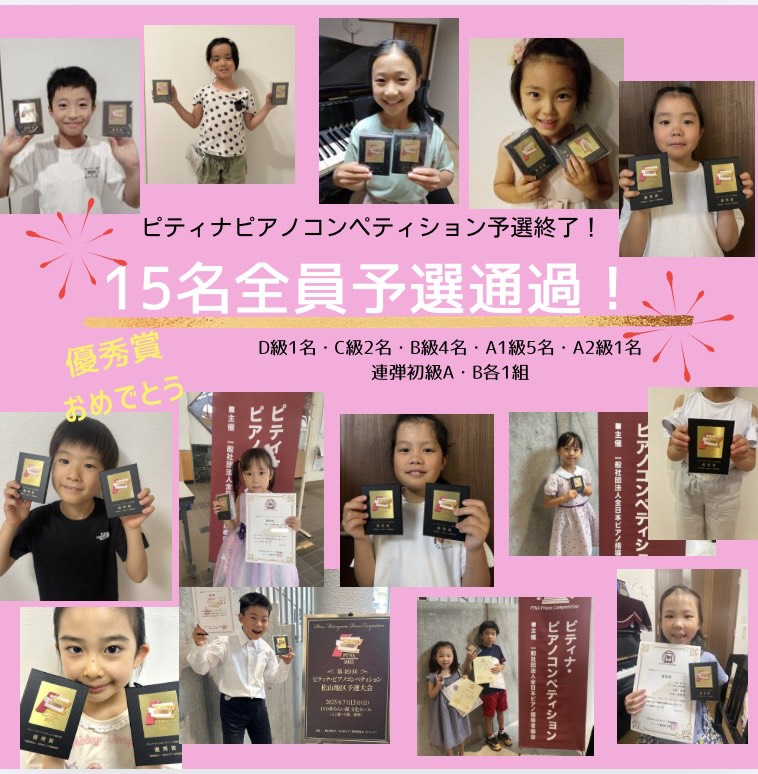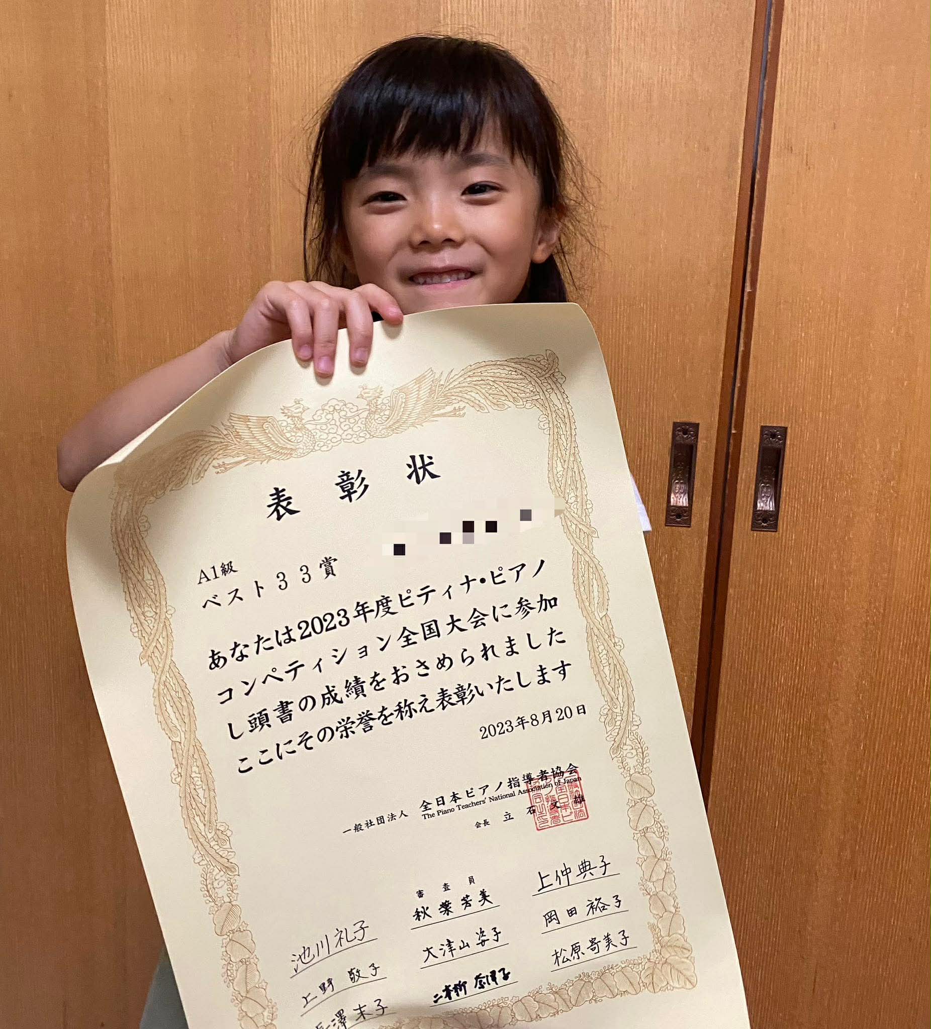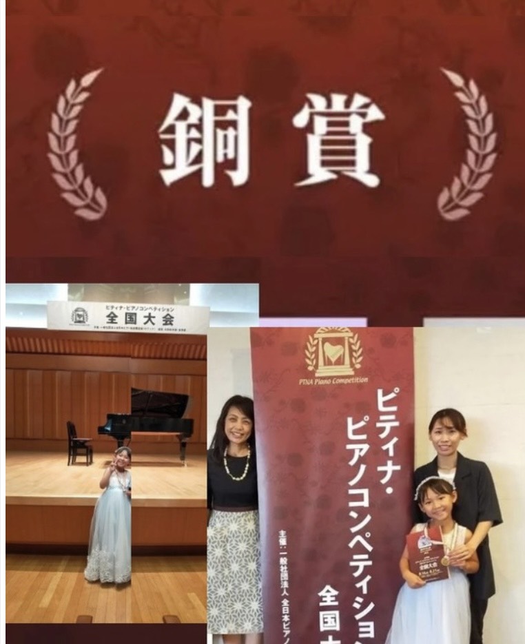 - ブルグミュラーコンクール、バッハコンクール等でも予選1位2位特別賞多数。